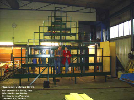 Den sjungande julgranen (pronounced: den shoong-an-deh yule-grah-nen) “the singing Christmas tree”, is one of Gothenburg's most popular outdoor musical attractions presented during the city's annual Christmas event: "Julstaden Göteborg". Thanks to its sponsors, the event is free to the public and features some of the city’s best local choirs performing a wide range of international holiday favorites. Amy Elizabeth Wheeler,the production's artistic director, works closely with the choirs, musicians, and the production team to deliver holiday cheer year after year since the production’s debut in 2004. As an original choir memberin "The South Street Seaport Singing Christmas Tree" in New York City (back in the ‘80’s), Amy thought a similar production could be successful in Gothenburg. So in 2001, Amy presented the idea of a singing Christmas tree to Pehr Sandström (then in charge of special effects and set-building at Göteborgs Operan) who thought it was a terrific idea and immediately made drawings for the scaffolding and constructed a model.